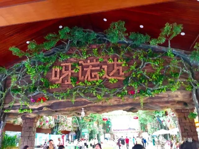 还没开始玩就先想到吃,我果然是吃货。呀诺达景区其实最大的卖点我觉得不是原始森林,而是它的气氛。一进到它的广场就可以感受到浓浓的“节日氛围”欢快祥和,虽然我也不知道为什么会用的“节日气氛”来形容,但我感觉这个形容词最贴切。每一位工作人员都会热情的向你出示“Y”字手势打招呼并大喊“呀诺达”。原来“呀诺达”在海南本土方言中表示一、二、三。他们把人和自然联系起来一生二、二生三、三生万物。“呀诺达”又被意为欢迎、你好,表示友好和祝福。所以用简单的你好就已经把你引进了欢乐的气氛中。